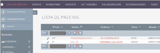 - Listas de precios